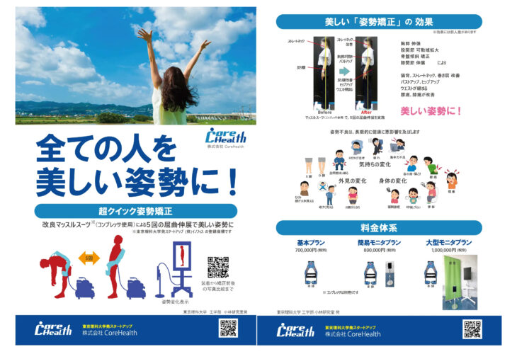 株式会社CoreHealth〈東京理科大学認定スタートアップ〉は、体と心の「美しい姿勢」を広め,健康で自立できる持続可能社会の実現を目指します。